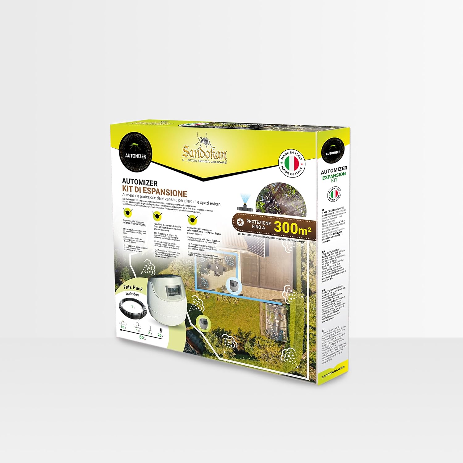 ESPANDI LA PROTEZIONE DEL TUO GIARDINO: Questo kit è progettato specificamente per potenziare il sistema Sandokan Automizer esistente. Permette di ampliare la barriera perimetrale antizanzare coprendo ulteriori 300 mq di superficie, ideale per giardini di grandi dimensioni, parchi o aree con conformazioni complesse che richiedono più punti di erogazione.