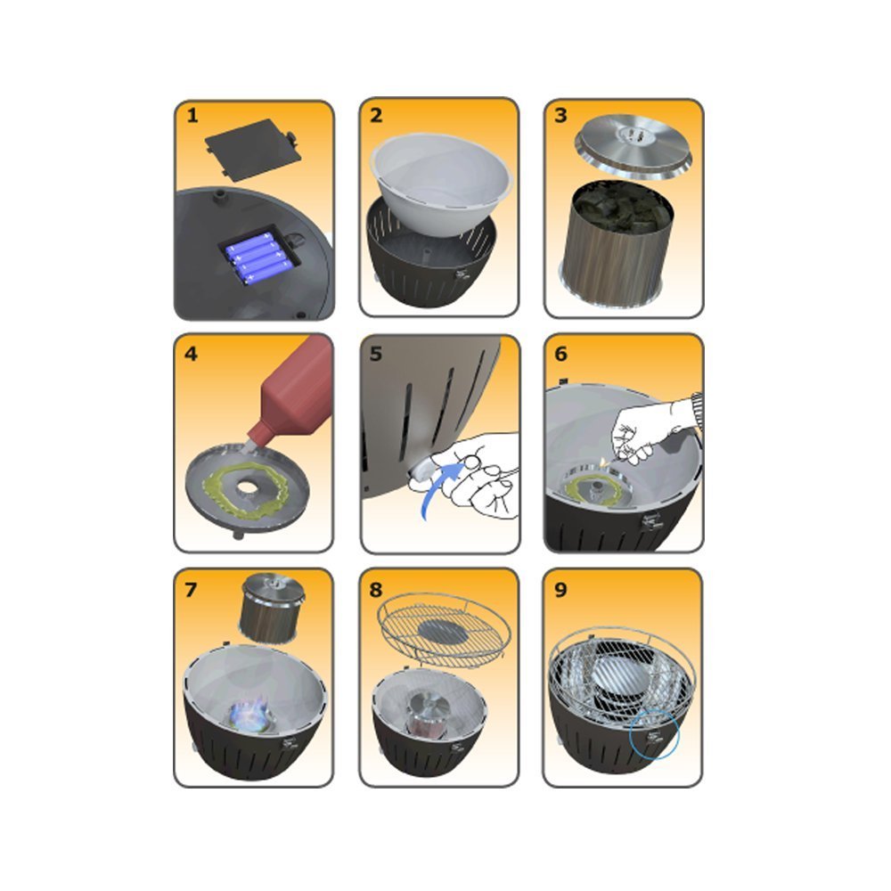 Il LotusGrill è molto facile da smontare. La griglia e la ciotola interna posso essere messe in lavastoviglie. Grazie alla costruzione a doppia parete il guscio esterno non si scalda mai e resta pulito.