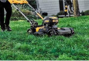 Dewalt DCMWSP564N-XJ è un rasaerba a batteria professionale semovente alimentato da due potenti batterie da 18V per un totale di 36V.